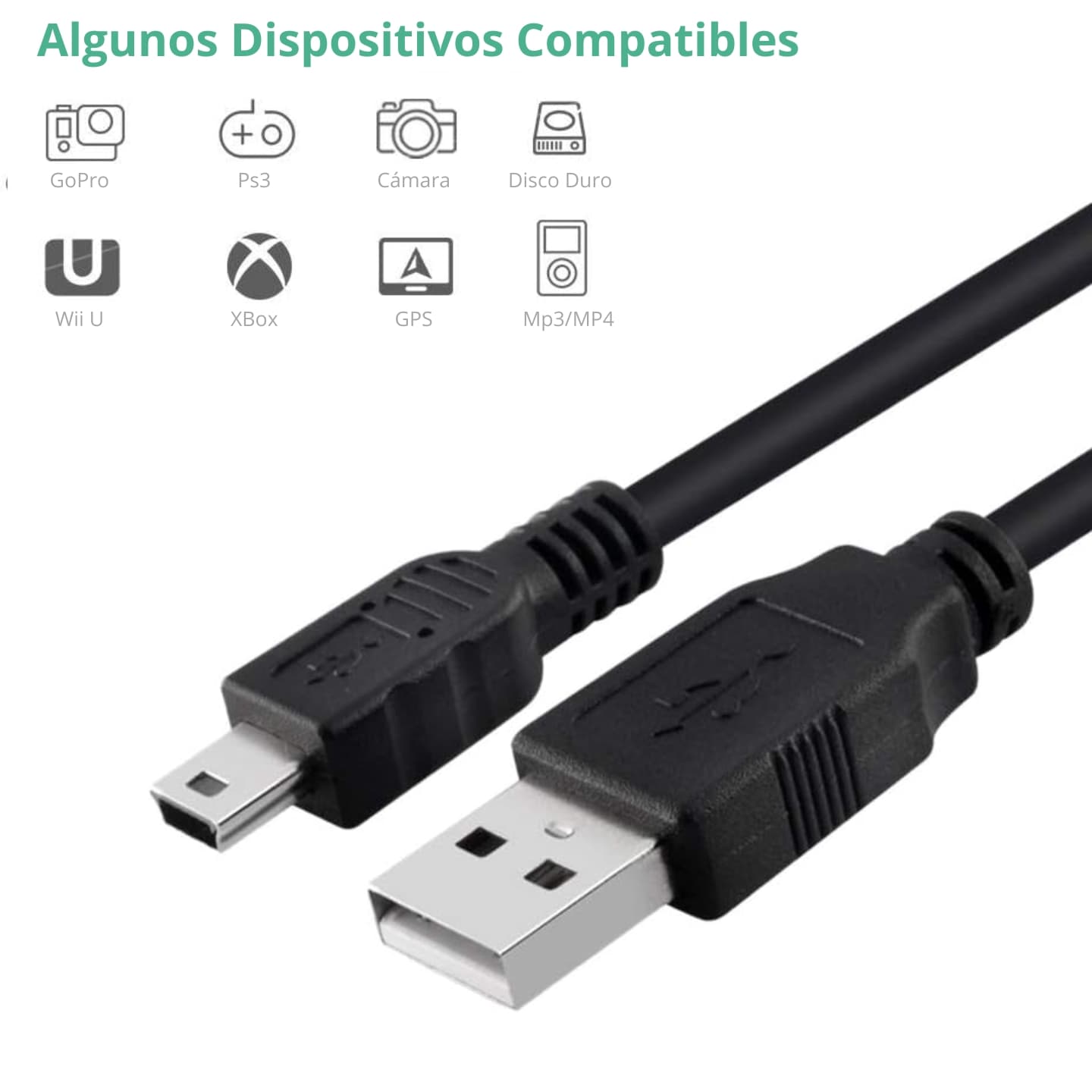 Cable cargador USB-A a Mini USB V3 480 Mbps 1.5 Mts Con Filtro