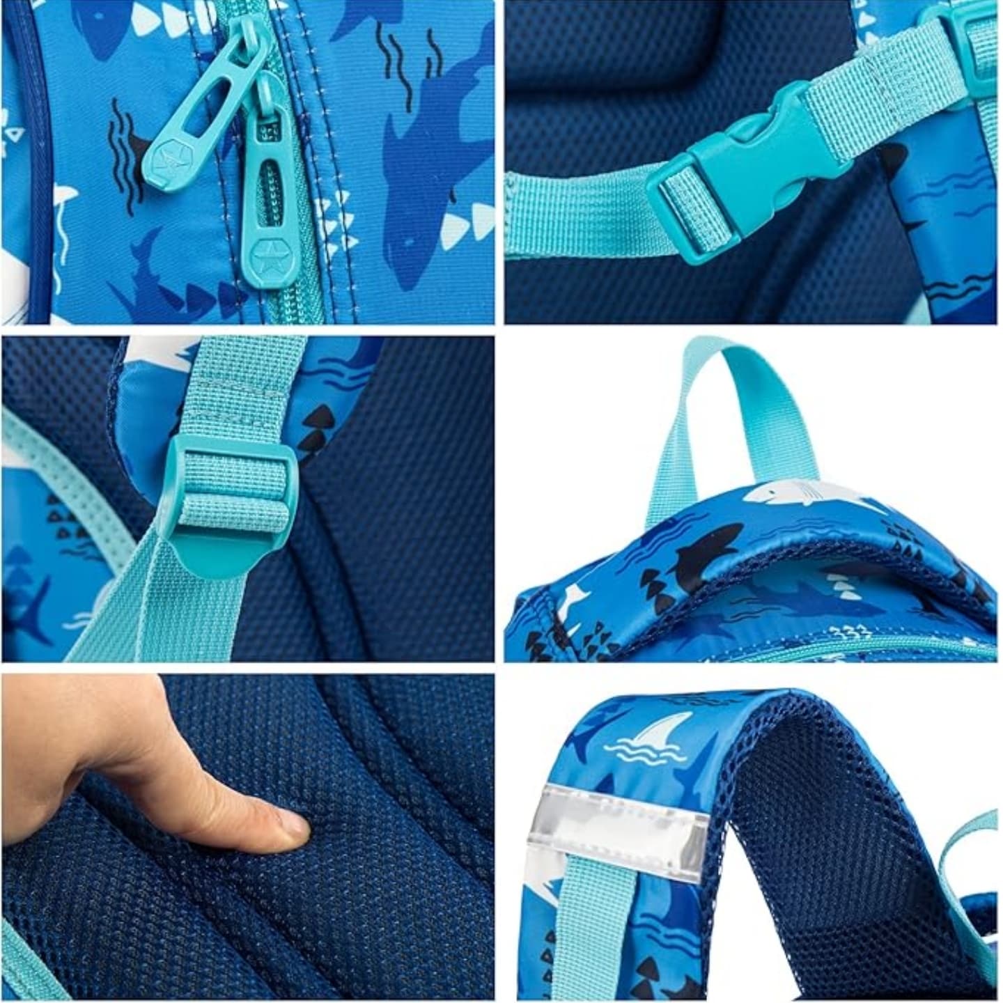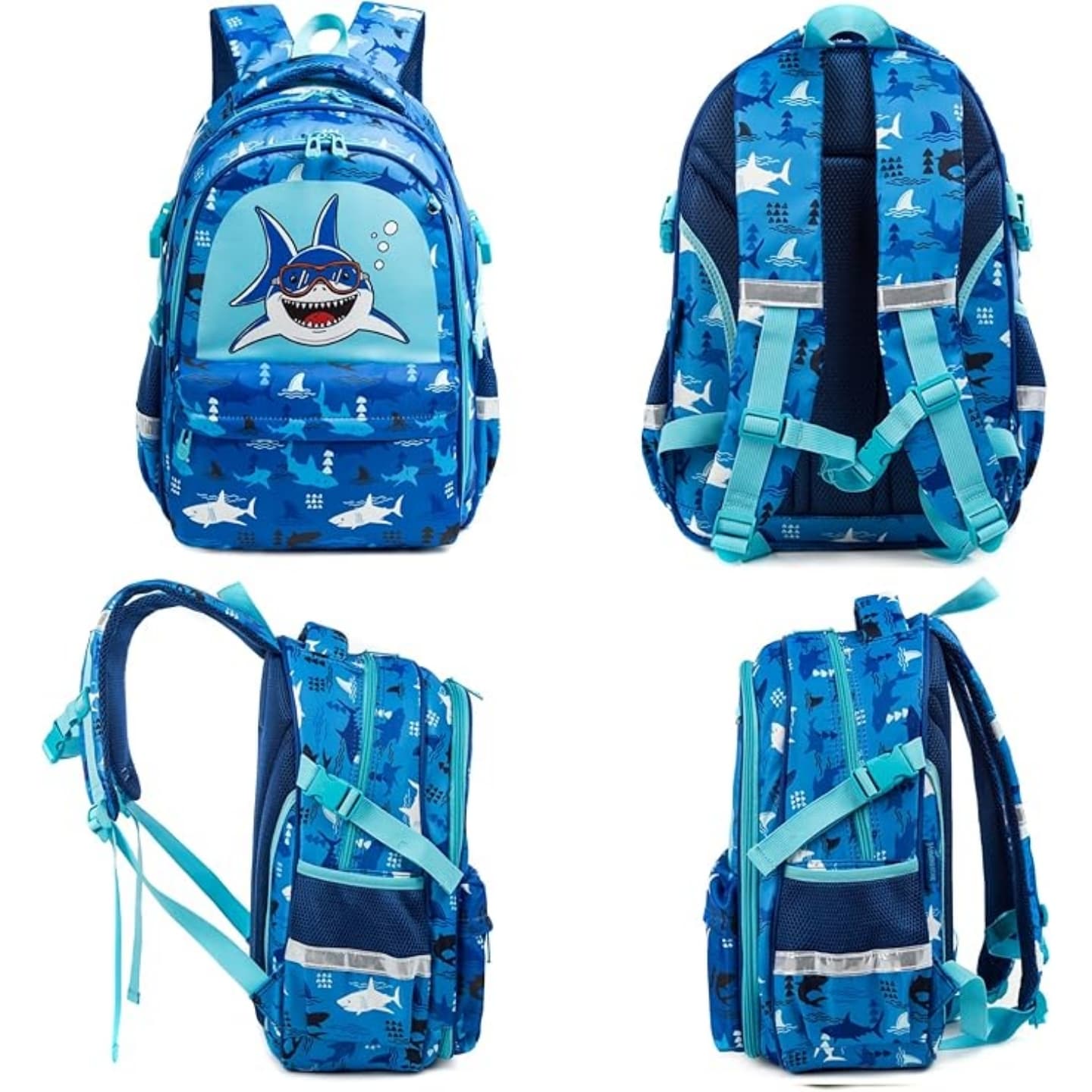 Kit Mochila Escolar Con Carro + Vianda + Cartuchera Shark Estampado Azul Marino — Jasminestar — imagen 1