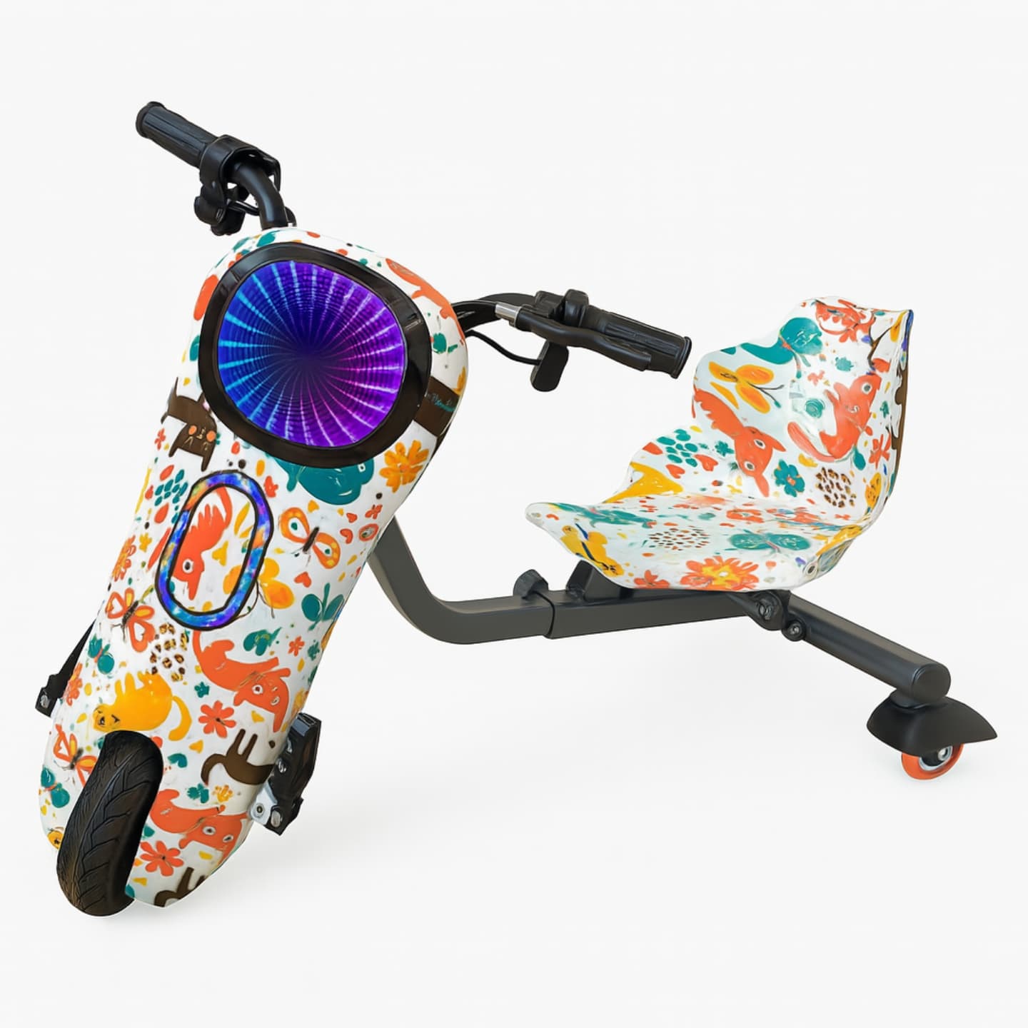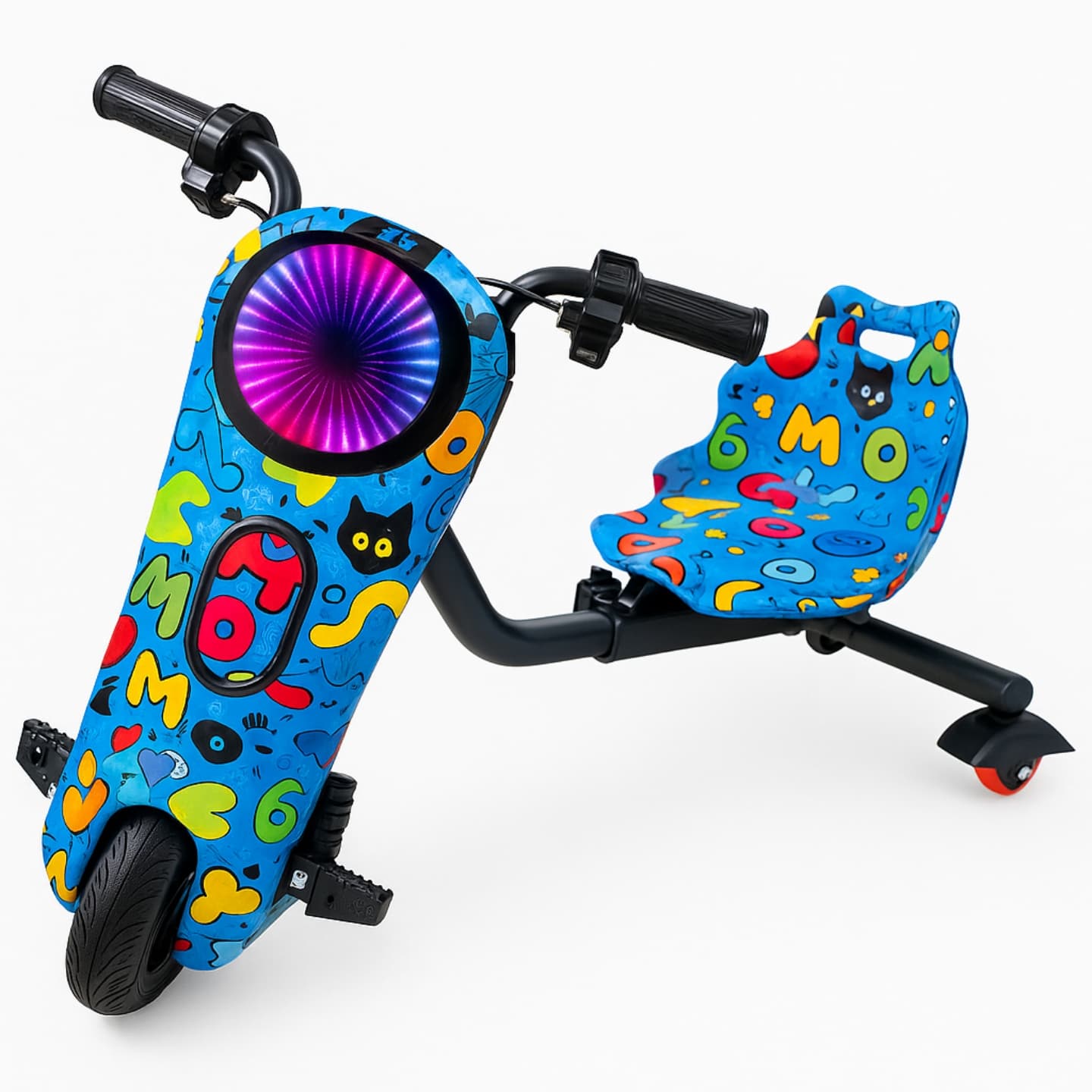 Propuesta de movilidad eléctrica infantil con luces, audio por Bluetooth y formato tipo scooter–triciclo para uso en espacios amplios y vereda bajo supervisión adulta. - Respetar edad, peso máximo y uso de protección personal según normativa local. - Autonomía y tiempos de carga según ficha: planificar la carga antes de salidas largas. - Los parlantes Bluetooth suman música o cuentos durante el paseo sin cables sueltos entre manos del niño.